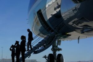 U.S. President Joe Biden steps down from Air Force One upon arrival at Nevada Air National Guard in Reno, Nevada, U.S., March 19, 2024. REUTERS/Kevin Lamarque