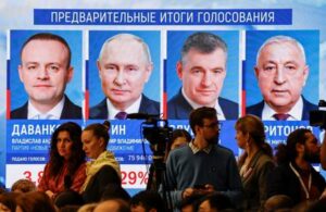 Russia’s central election commission announces latest results in presidential election People gather near a screen showing results of Russia’s presidential election, March 18, 2024. REUTERS/Evgenia Novozhenina