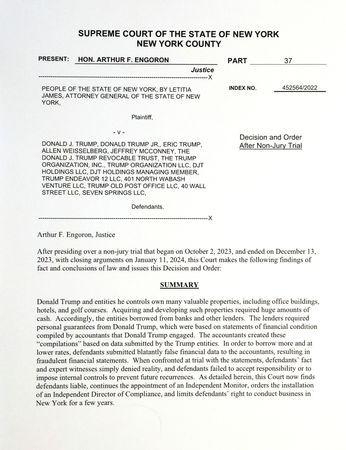 Engoron criticized Trump for his behavior during his testimony – and wrote that the testimony hurt his cause.